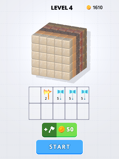 By merging axes together, you can make them stronger and cut through even more blocks at the same time. You can also use coins you earn to acquire new axes and customize them to your liking.