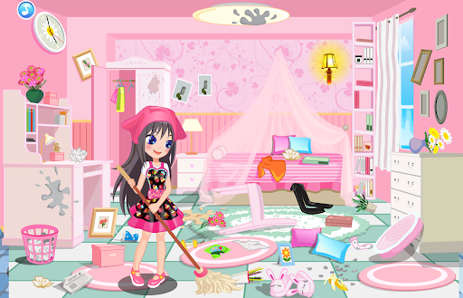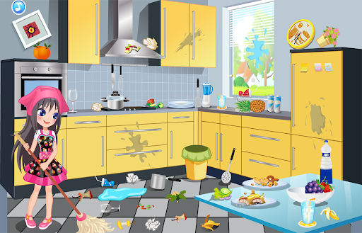 The thing that you have to help the girl in games clean parts of the house of dirt with a hand to help her clean the kitchen, you will find instructions that will help you in cleaning.