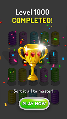 Our hoop stack sort puzzle not only is a game, but also force your brain working effectively through our tricky level. It' time to train your brain with this free puzzle and you can play it offline. Get it now, play, and make a challenge with your family or friends.