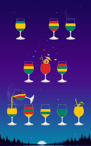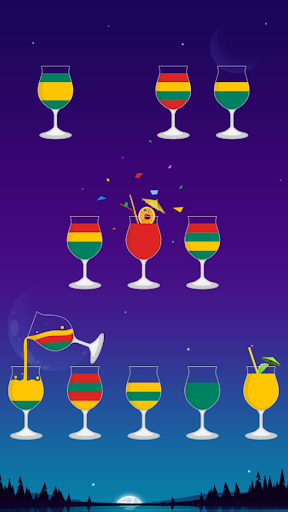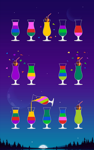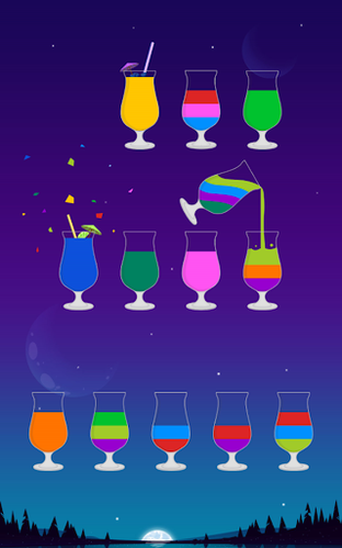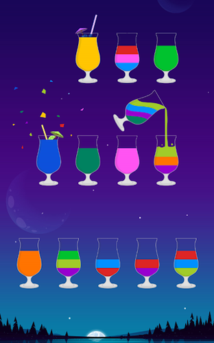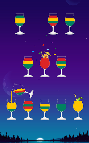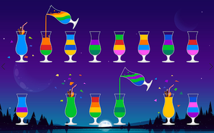 Try to arrange and sort the color cocktail waters correctly in the grasses until all colors are in the same glass.