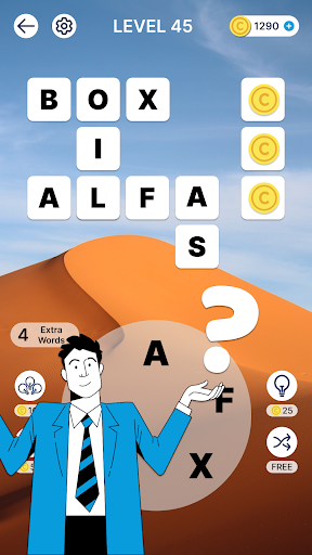 Have difficulty coming up with the word games? You can use coins to buy a hint to help solve the level.
