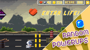 Help heroes run from an Alien invasion in a fun and challenging offline arcade game with pixel art graphics, powerups, and obstacles.