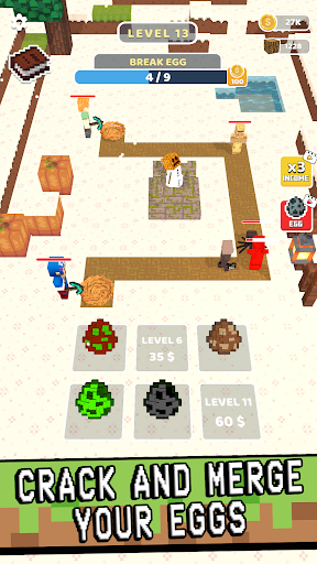Idle Craft and merge eggs to create an army of mighty monsters that will aid you in defending your base from impending threats in Building Games. The future of this cube world rests upon your ability to strategically merge eggs and create stronger beings in Idle Craft Merge Adventure. 🐣