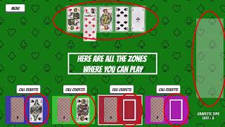 The bottom zone (you and your opponents) : you can play cards with a value of +/- 1 your playing card and of a different color (e.g. on a black Queen you can play either a red King or a red Cavalry