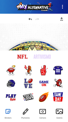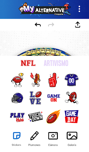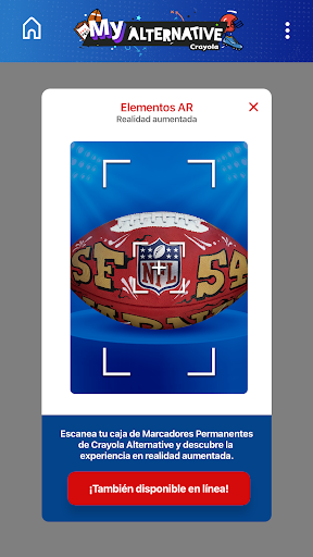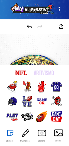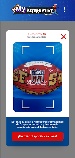 Entra a la app http://crayolaapp.com.mx/crayola_alternative/marcadores , activa la cámara, escanea los logos de la NFL y descubre el resultado de la inspiración en la herencia de grandes jugadores de futbol americano y el increíble talento de nuestros artistas mexicanos, plasmado en una obra única y original, que podrás ver en Realidad Aumentada, personalizar con stickers y compartir con quien tú quieras.