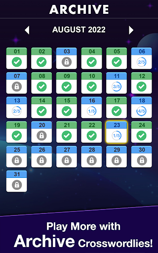 If you miss a puzzle or just want to test your memory, play Archives to play older puzzles. We have the entire collection of the puzzles so you don't miss out on your Crosswordly EVER!.