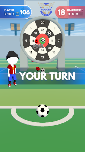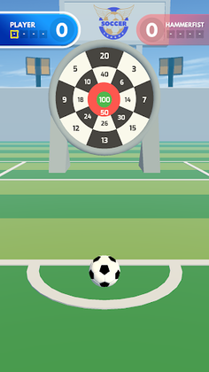 Giant Dart Board with Soccer BallAim your soccer ball at the giant dart boardHit it hard and stick it to the maximum scoreDon’t let your enemies score more than you.