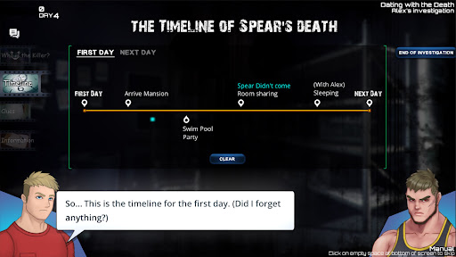 Unterhalte dich mit anderen Charakteren, um detaillierte Informationen über den Fall zu erhalten. Dank eines Charakterbeziehungssystems bestimmt dein Dialog mit anderen Charakteren die Höhe deiner Beziehung zu ihnen. Je höher die Stufe, desto größer ist die Wahrscheinlichkeit, dass besondere Ereignisse ausgelöst werden.