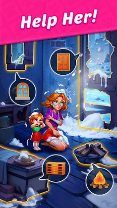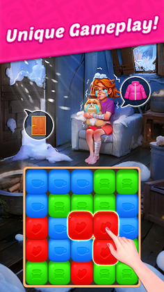 Design Blast: a matching puzzle game where you renovate and decorate homes while interacting with characters and blasting cubes.