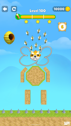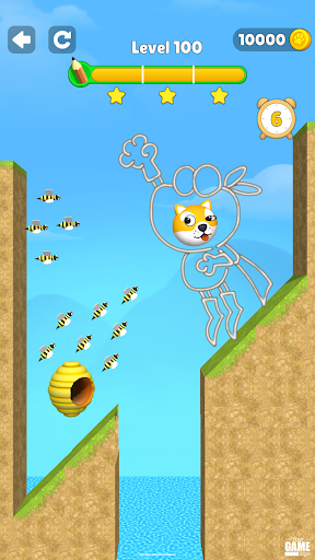 Draw a line to save the little dog from the bees to win the game. You can draw any shape as long as you can protect the dog from the bees.