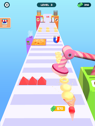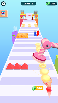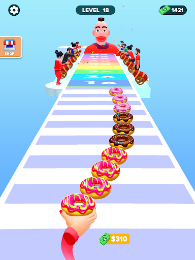 Run and collect sweet, tasty donuts in this exciting stack game. 😋 Swipe left and right to gather ingredients and toppings, designing vibrant and delicious donuts as you race. Avoid obstacles to make your donut stack longer and earn more money at the finish line 💰.