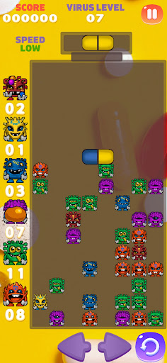 Create blocks of pills to make a line of 4 or more of the same color to kill all the viruses in the jar.😈 Beat 120+ levels of this game and become the best doctor.🧑⚕️ Stop the virus!