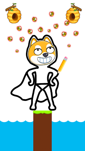 🐝 Touch the screen to draw anything you like in order to save the dog and pass the level.