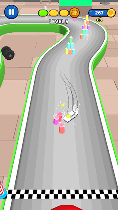 Knock the cans, complete the levels and unlock cars.