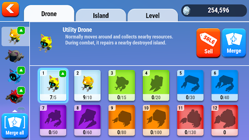Enjoy defeating opponents with your own island arrangement and battle tactics. Tactically arrange your island and construct drones to defeat your enemies and grab the rewards. The game has a vivid battle scene with colorful and dynamic sound.