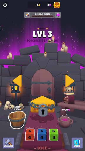 Enter the treacherous dungeon and face deadly traps and ferocious monsters in this dice-based RPG.