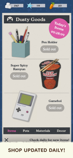 Over 20 different Care Cards allow you to interact with your plants in various ways, such as singing, writing, and touching them. As they grow and prosper, their leaves sparkle with bliss, bend down when they're ill, and even jump with delight when showered with kindness. Collecting Care Cards encourages you to give yourself the same love and care you devote to your plants.