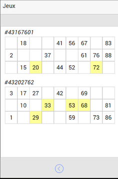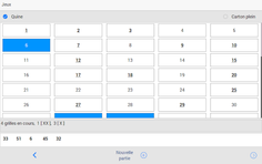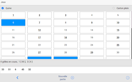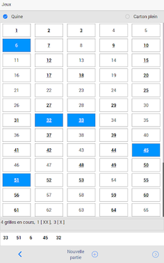 Démarrer une partie après avoir choisi vos grilles et suivez le tirage. Cochez les numéros au fur et à mesure de leur sortie. EasyBingo vous signale si vous avez gagné.