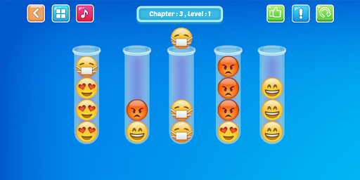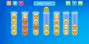 Solve the game by sorting colorful emojis. Enjoy the mental challenge as you solve the same color emojis into a tube.