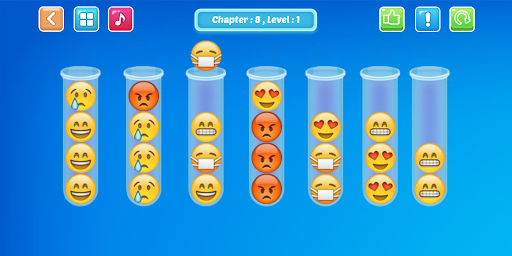 Quickly sort the colored emojis in the tubes until all the same colors are together in the same tube. A challenging yet relaxing game to exercise your brain!