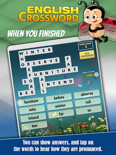 Enjoy solving the crossword game and improve your English vocabulary and more.
