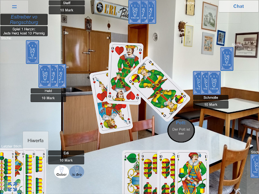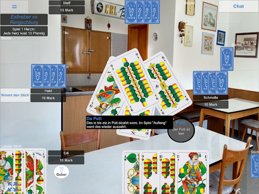 Gekartlt wird traditionell in Wirtshäusern. Und im Wirtshaus ist auch die Stimmung am besten zum Kartln. Wir wollen diese Stimmung einfangen und eine passende Wirtshausatmosphäre bieten. Deswegen könnt ihr euch auch aussuchen in welchem traditionellen bayrischen Wirtshaus ihr spielen wollt. Dabei startet ihr in einem zufällig gewähltem Wirtshaus und könnt dann aber das Wirthaus beliebig wählen oder auch unterm Spiel wecheln. Darüber hinaus könnt ihr im Menü näheres über die Wirtshäuser erfahren sowie deren Kontaktdaten einsehen. Sämtliche Wirtshäuser und deren Besitzer kennen wir natürlich persönlich. Mit der Zeit kommen auch immer wieder neue Wirtshäuse dazu. Selbstverständlich erst nach ausgiebiger Prüfung unserseits ;)