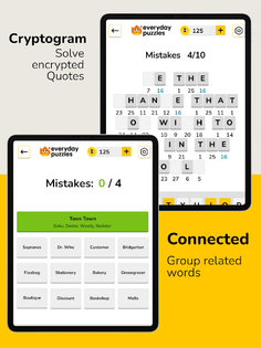 Experience daily challenges, endless fun, and a variety of games in just one app with Everyday Puzzles. Put your knowledge to the test while enjoying yourself and competing with friends. Crossword, Word Search, Password, Hashtag, Cladder, Sudoku, and Tangle are just a few of the phenomenal games available on Everyday Puzzles, with exciting new additions coming soon.