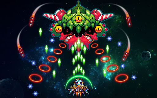 - Utilize gold and gems to level up your spaceship in order to combat the diabolical enemies.