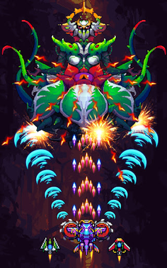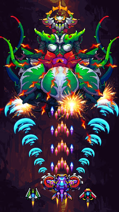 - Retro visual: The stunning pixel art graphics provide the perfect throwback to classic games and vertically-scrolling shooters. This top-down shooter game promises a nostalgic ride that you won't want to miss, as the battles unfold right before your very eyes.