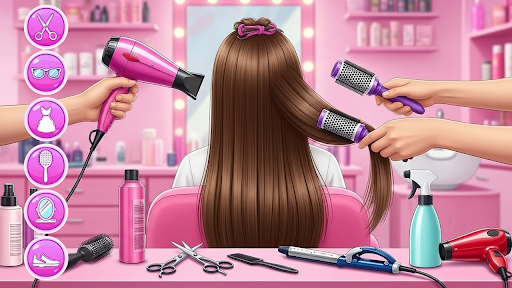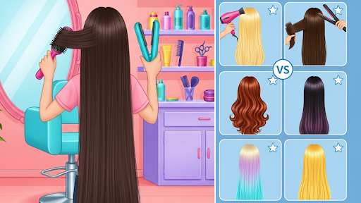 Every princess girl wants to perfect tycoon beauty. Apply realistic barber hairdryer, comb, scissor, nails polish, hair colors, straightener,👩curler, shampoo to give a dream makeover to cute little girls in triplet salon. Women have worn braids all over the world, which is versatile, incredibly intricate to simple plaits. Braids are perfect for every occasion whether you are at office, gym or wedding. French braid is classic for reason and super smooth for professional look for soft and romantic vibe and can team it with fishtail braid which is popular for wedding guests.✂️
