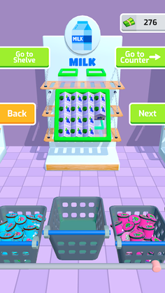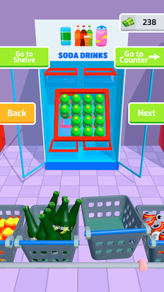 Amazing! Fill the fridge shelves with various objects, groceries, beverages, and other goods, and try to fit them all in. Empty your shopping baskets one by one, discover ideal sorting areas, and restock your fridge to play with whatever you like!