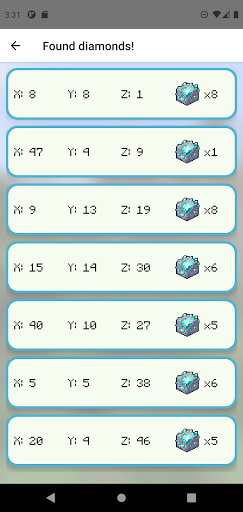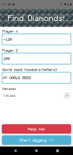 Ever wanted that shiny new diamond armour set but don't have enough diamonds? We have you covered! This is the best unofficial companion app to find resources. Just type in your world seed and coordinates and you will get a list of the exact locations of many veins of diamond ore deep underground.