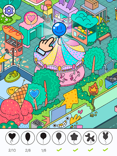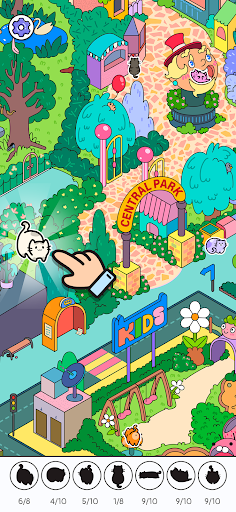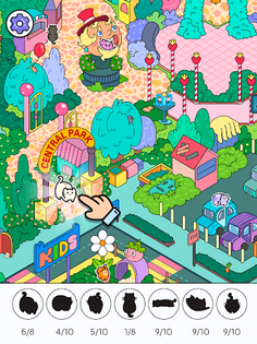Hidden pictures everywhere - under a tree, next to Grandma, or on the roof? Zoom in and swipe your finger across the map to collect all the hidden objects.