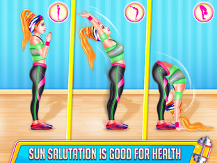 Fitness Workout game has different types of yoga poses including fun yoga poses.