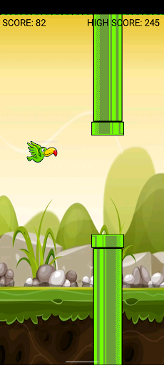 You need to constantly control the frequency of tapping on the screen to control the bird, so that the bird can go past the pipes that flow against the bird. Keep flying the bird and get you score as high as you can.