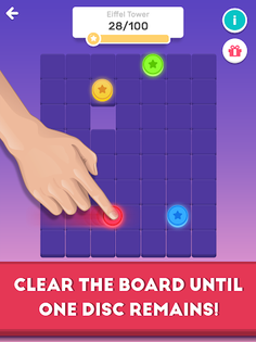 Fling different discs against each other off the board, until only one is left.