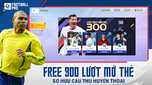 - Lần đầu có trên game bóng đá mobile, FOOTBALL PRO VTC chơi lớn tặng Free 300 lượt quay mở thẻ miễn phí khi đạt các mốc level
