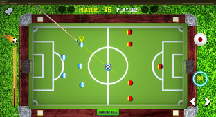 The game presents a billiard table with the characteristics of a soccer field, where two soccer teams, made up of billiard balls and a ball that represents the soccer ball, which, as in the real soccer game, the teams they start lined up on their own playing field. The ball, just like in soccer, is placed in the middle of the field where each team will have to hit in turn in order to score goals!