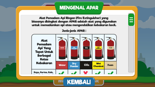 Sebagai pemadam kebakaran yang handal, anda diminta untuk mematikan sumber api sebelum menjalar menjadi kebakaran besar! Kenali jenis-jenis kebakaran, sumbernya, dan alat pemadam kebakaran (apar) mana yang tepat digunakan untuk mematikan api!