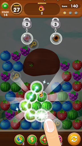 - When you start the game, various fruits will appear. Match 3 or more fruits of the same kind. Matched fruits will disappear, and whenever 6 or more fruits are matched, a magic item is created!