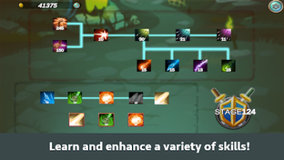 Defeating monsters gives you coins, which you can use to learn and enhance your attack power, attack speed, and new skills.