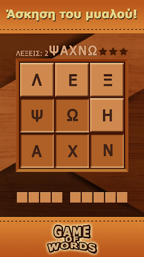 Το νέο παιχνίδι λέξεων είναι τώρα διαθέσιμο σε όλους για να παίζουν οποτεδήποτε και οπουδήποτε. Ξεκινήστε το ταξίδι σας στο μαγικό κόσμο των λέξεων με το Game of Words. Αν σας αρέσουν τα παιχνίδια λέξεων δεν μπορείτε να αγνοήσετε αυτό το παιχνίδι! Είναι δωρεάν, διασκεδαστικό και εκπαιδευτικό! Μην αργείτε! Κατεβάστε τώρα το νέο παιχνίδι λέξεων και ζήστε το παιχνίδι όπως ποτέ άλλοτε! Αντιμετωπίζετε κάποιο πρόβλημα με την εφαρμογή. Επικοινωνήστε μαζί μας στη διεύθυνση cseven.smartgames@gmail.com. Ευχαριστώ!