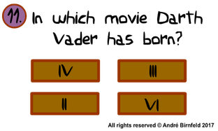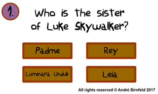 Genius Quiz SW introduces 50 new questions and tests your knowledge of the Star Wars universe in a challenging manner. Quotations and extracts are legally allowed.