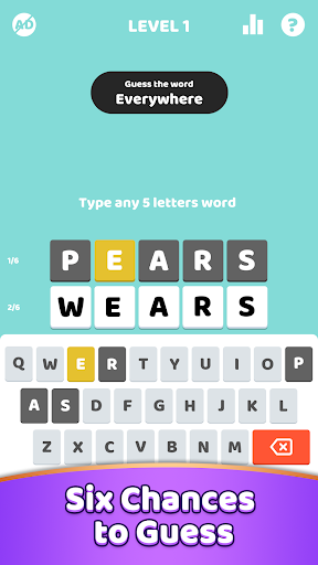 •Six chances to guess the hidden 5 letters word.