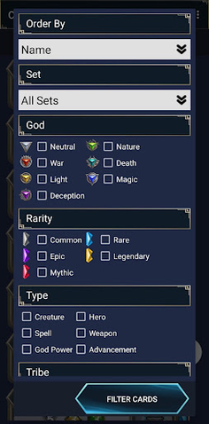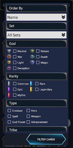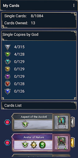 With this application you will be able to consult the list of Gods Unchained cards, create your decks and keep track of the cards owned.