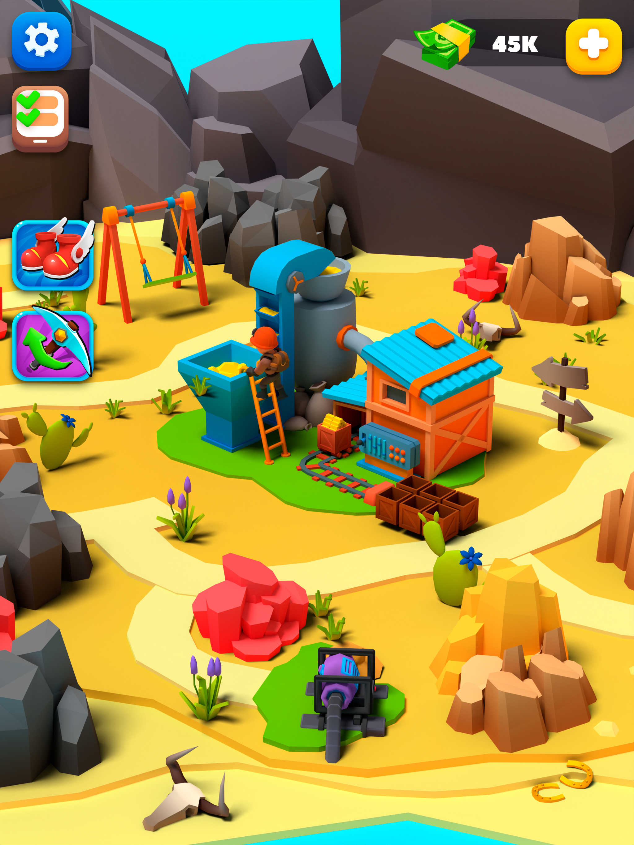 Immerse yourself in the exciting world of the Gold Rush, where every booty is one step closer to riches. Collect the necessary materials such as firewood, sand, stones and, of course, the precious gold itself. Use these resources to build buildings, upgrade equipment, and raise your mining empire to unprecedented heights. It's time to mine for gold and claim your fortune! 💰💰💰