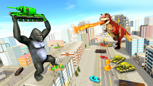 -In dino rampage game of natural city environment for destruction of wild chimpanzee gorilla games