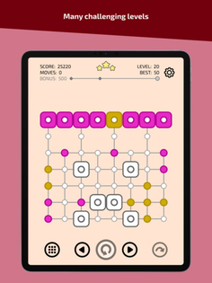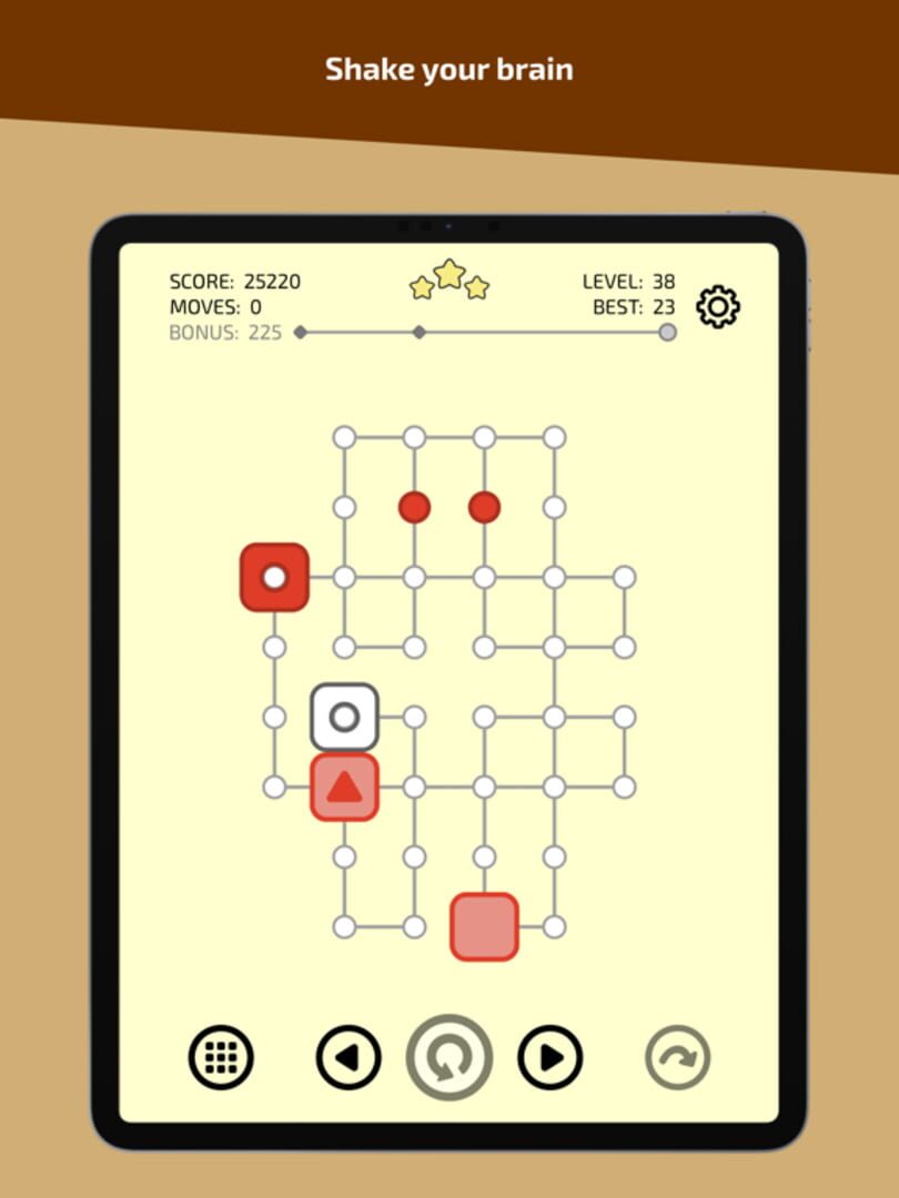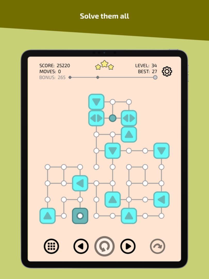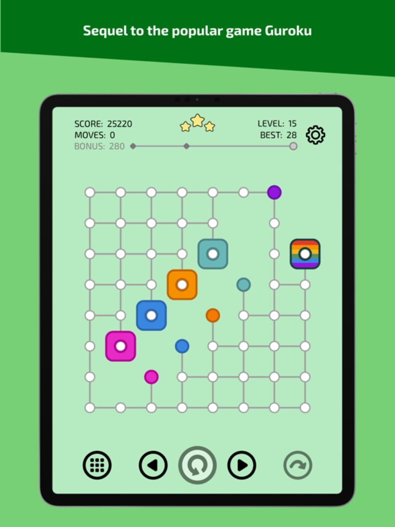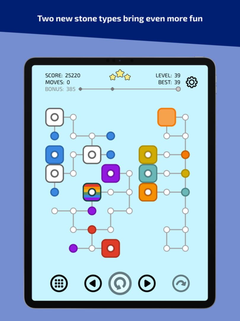 The objective of the game remains the same; the player shuffles colored stones on the grid, limited to the direction that each stone can move, and guides them through to the final square of the corresponding color. However, with each move, the stone keeps sliding until it cannot move or it collides with another stone. This unique gameplay mechanic forces the player to focus and devise strategic solutions.