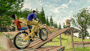 with several player characters as a bicycle men , stick hopper, a father-son bike riding and Guts Wheels Glory .