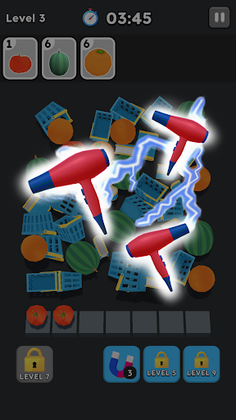 - Select an object and put it into the elimination column below, then find three identical objects to complete the matching collection